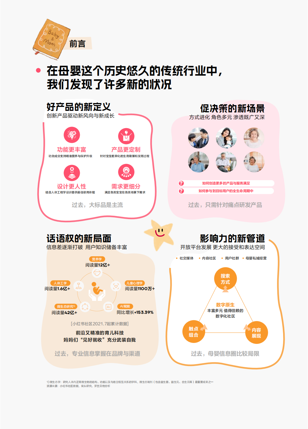 随着一批95后年轻人成为宝妈宝爸,从亲子关系和育儿方式,到整个母婴行业与市场的发展,都走入了全新的时代。背靠信息科技的发展,妈妈对好内容好平台的需求不断提升,形成更先进的认知,钻研和挑选产品更用心,购买品类更宽,支付意愿和能力都在提升。同时,她们高涨的分享欲望,让松弛、平视、愉悦的新世代育儿观和生活方式,感染越来越多人。在行业演变中品牌响应消费者痛点,小红书成为宝爸宝妈们信息搜索、内容学习和生活分享中不可或缺的平台,共同让育儿更专业、更轻松。
