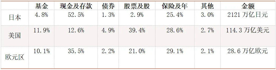表1 日美欧居民资产配置情况(截至2023年3月末)
