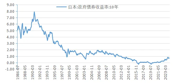 日本在较长时期内处于极低利率时代。自1990年日本地产泡沫破灭后,日本经济陷入失落的三十年,日本10年期国债收益率开启长期下行。如图2所示,1990—2003年间,日本10年期国债收益率从高点的7.8%一路下行至0.5%,此后由于小泉政府改革效果体现,经济小幅复苏,10期国债收益率小幅上升。2008年金融危机之后,日本10年期国债收益率开启了新一轮超过10年的下行周期,从2.0%降至2019年8月的-0.2%。2016年2月,日本实施负利率政策,即商业存款存在央行的超额存款准备金利率为-0.1%。2020年以来,由于通胀抬升,日本10年期国债收益率有所上升。2024年3月,日本央行宣布退出负利率政策,将政策利率从-0.1%提高到0-0.1%范围内,同时结束收益率曲线控制政策,并停止购买ETF及房地产投资信托基金。