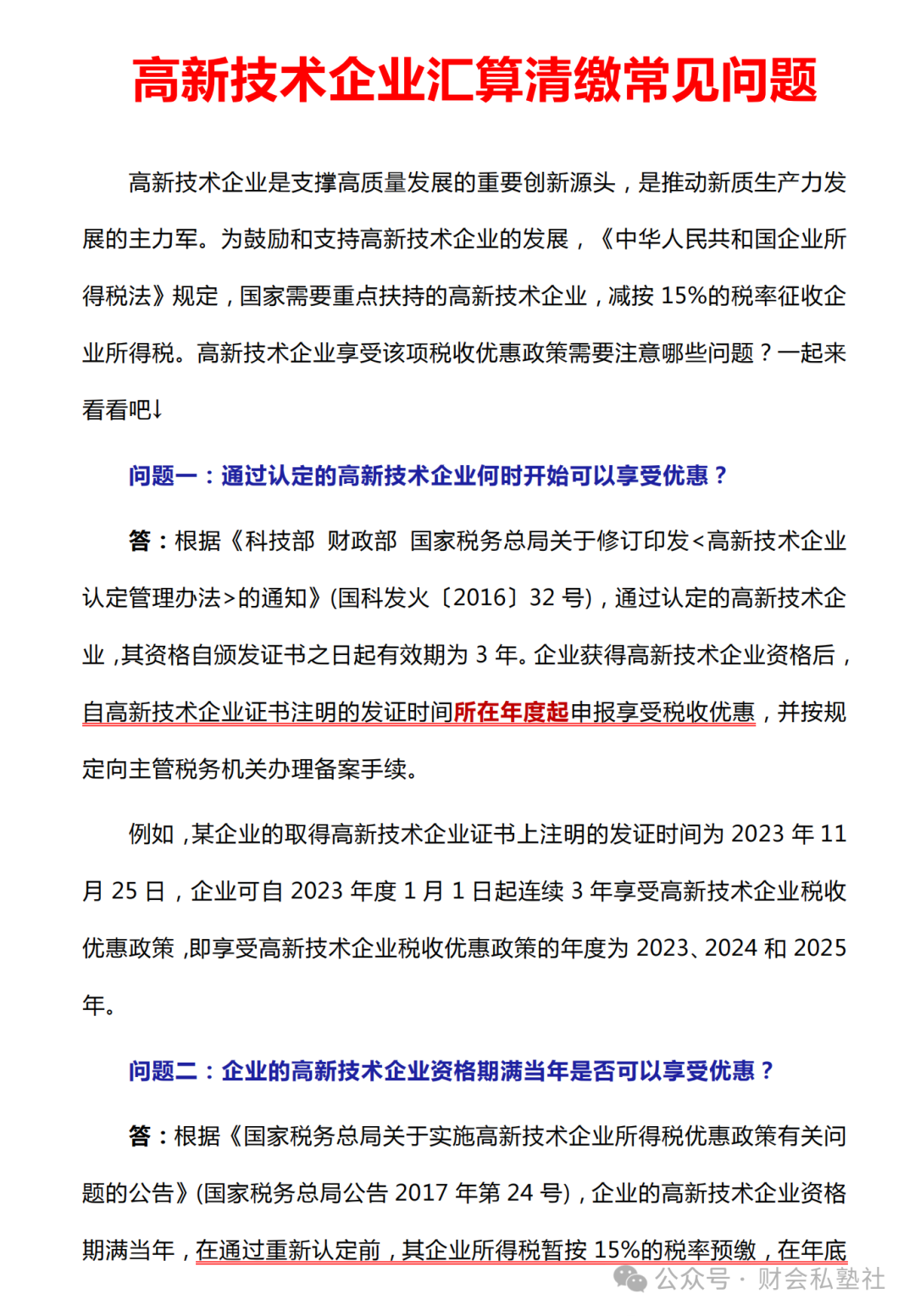 高新技术企业在税务政策方面会享受一些优惠,在申报的时候一不小心就会出错,那高新技术企业汇算清缴常见问题有哪些呢?比如说是否享受当年优惠、搬离地点资格是否还有效等等,关于高新技术企业的研发费用政策有什么,这里有指引手册,一起来查阅吧!
