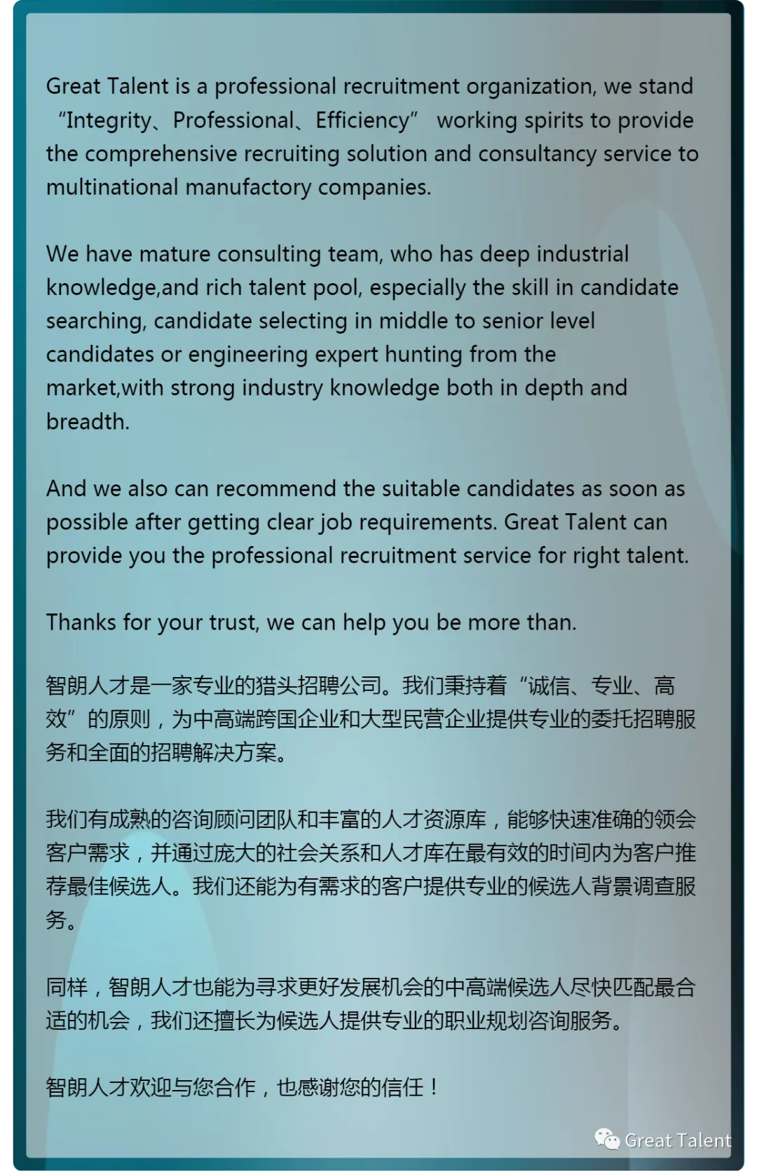 2. Fast learning ability with skillful reading and written in English, fluent oral English is preferred;