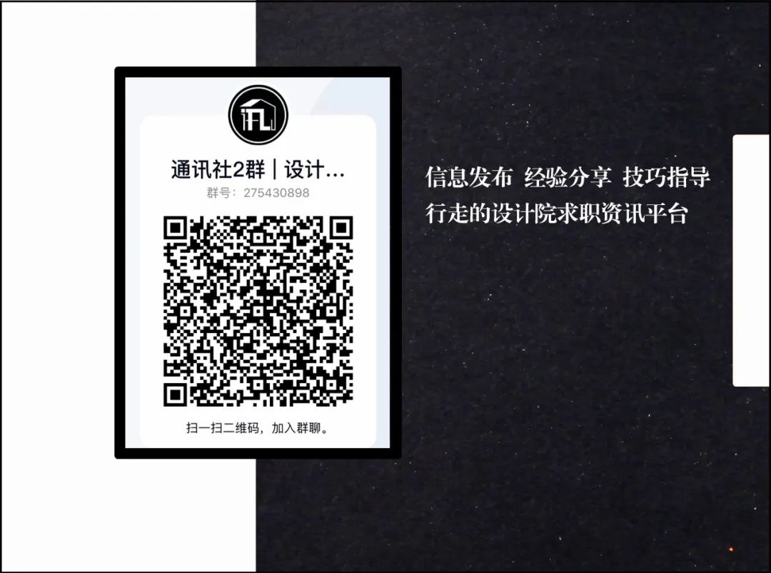 (目前设计院通讯社求职交流一群已满,扫码即可加入二群)