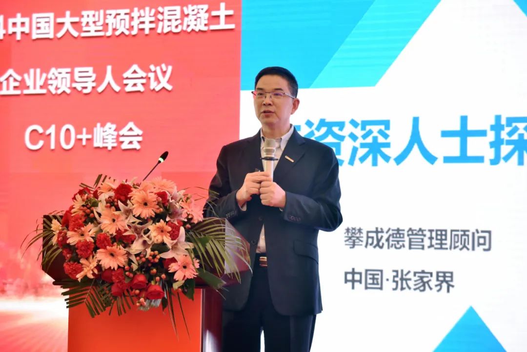 三一集团高级副总裁、泵路事业部董事长向儒安向儒安在致辞中首先感谢大家在百忙之中莅临三一培训中心参加此次峰会,他介绍,三一重工许多重要的战略决策,都曾在这间会议室产生,此次C10+峰会在此召开有着特殊的意义。他表示,当前,行业正处在发展的关键阶段,对于头部企业来说是解决之前发展问题的良好契机,是从过去的高速发展向可持续、高质量发展转变的重要节点。随后,向儒安作《以新质生产力赋能行业高质量发展》专题报告。他表示,混凝土行业当前正面临着全球化、数智化、低碳化三大发展趋势,行业高质量发展是必然趋势,头部企业须牢牢把握三大发展机遇,抓住机会,通过国内向全球转移、单机向成套转移、数智化突破、燃油向低碳转移等路径实现创新转型。他介绍并分享了三一集团“全球化、数智化、低碳化”的发展战略及实践成果。最后,他希望,三一能够与产业链伙伴携手,集众智、聚众力,共谋混凝土行业高端化、智能化、绿色化转型,助推行业高质量发展。