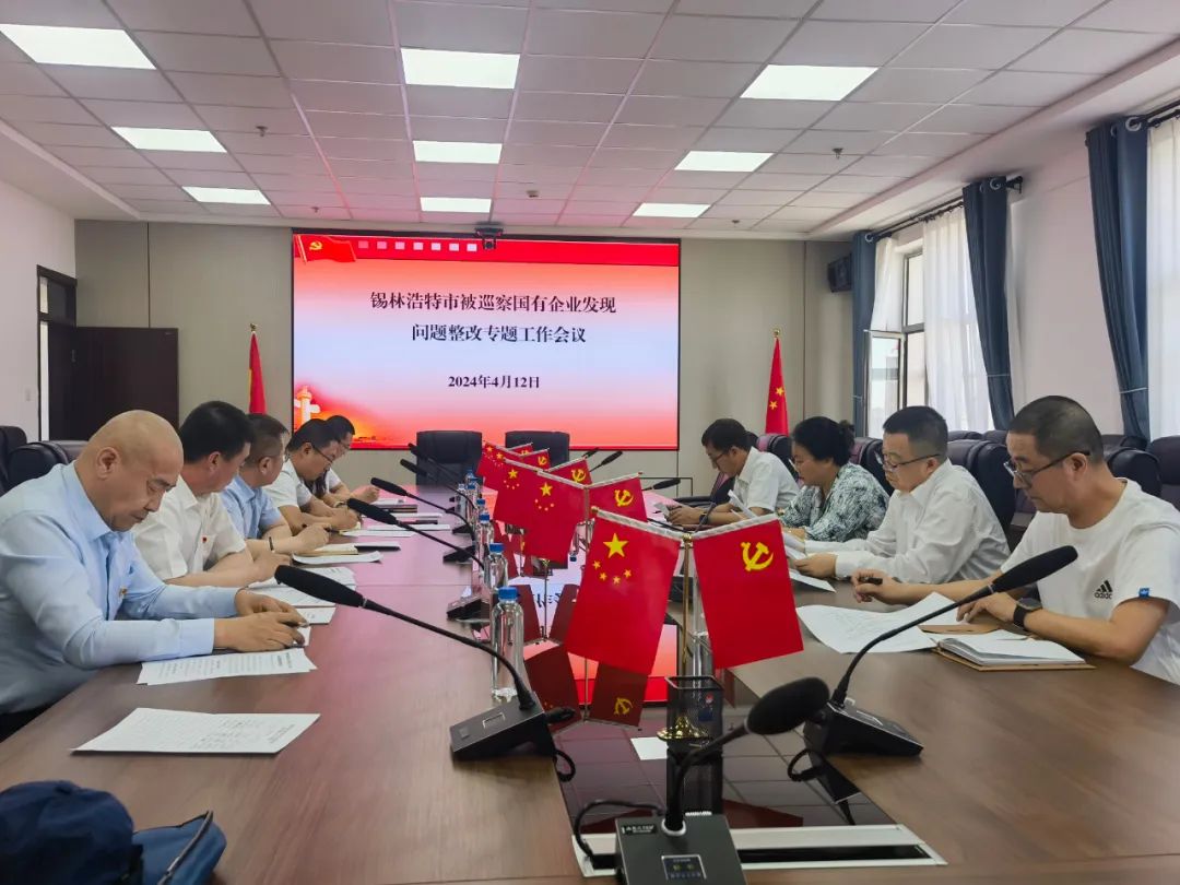 2024年4月12日,锡林浩特市国资委召集被巡察企业召开巡察整改专题会,参加会议的有锡林浩特市财政局副局长、派驻财政局纪检组组长、国资服务中心主任、国有企业服务股负责人、被巡察国有企业及其子公司负责人。