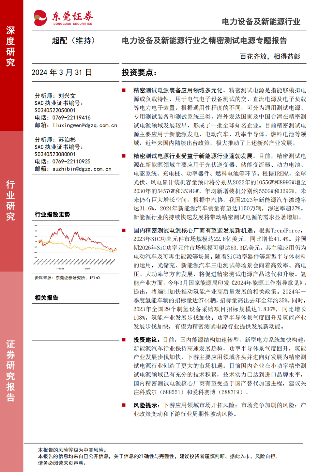 关注我们,后台回复“202404155”就可以获取《东莞证券:电力设备及新能源行业之精密测试电源专题报告-百花齐放,相得益彰》(完整版) 的全文下载链接。
