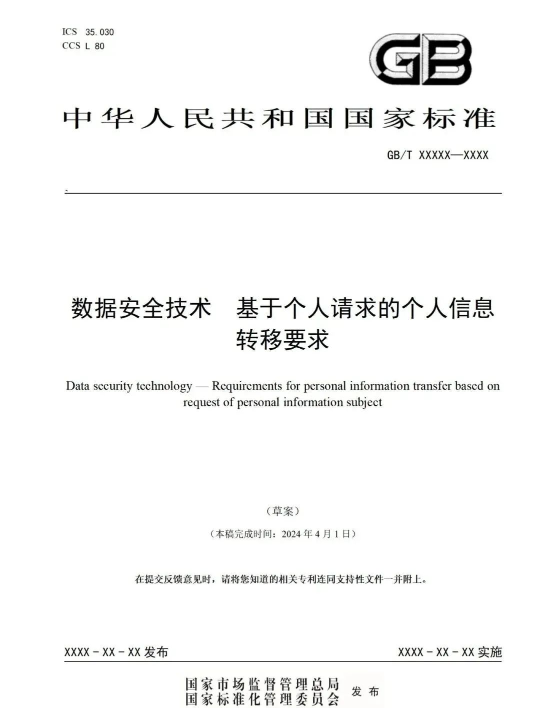 2024年4月3日,全国网安标委微信公众号发布“关于征求《数据安全技术 基于个人请求的个人信息转移要求》(征求意见稿)等4项国家标准意见的通知”。