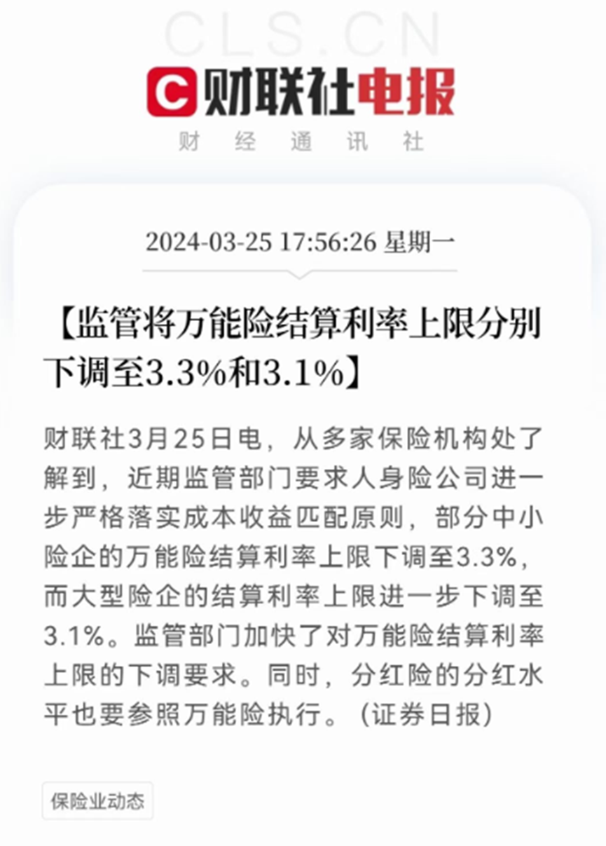 近期,不少客户向我吐槽万能险利率降了,是的,监管已经多次敲打了。