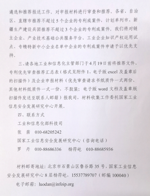 (3)若走第二个推荐理由即“涉及各省级和设区的市级人民政府重点鼓励的产业”,只能从省知识产权局推荐,不能走本次工信部的推荐通道。