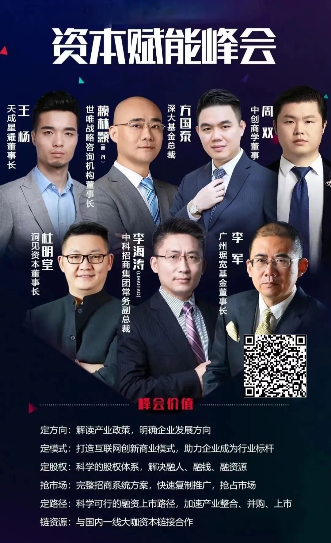 我们希望本次峰会能成为每个企业的【知心朋友圈】,在这个朋友圈里,有着国内最优质的资本到导师及投资家群体:大家在资本化的路上,一起交朋友、谈生意、谈融资。