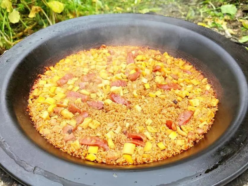 鲜嫩的春笋,翠绿的绿豆,爽口的莴笋,还有咸肉、肉肠,荤素搭配,加上糯米,在柴火的烘煨下,喷发着浓郁的香味,别有一番滋味。