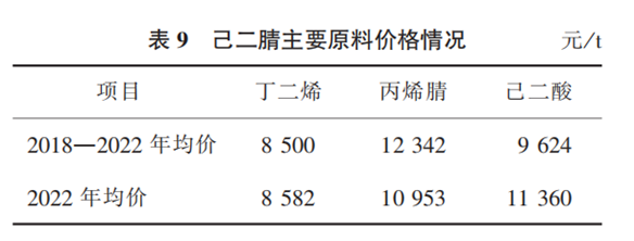 己二腈主要原料价格详见表9