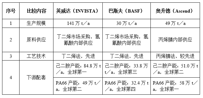 英威达、奥升德及BASF公司的尼龙66产能合计139.4万t/a,约占世界总产能的45%以上。