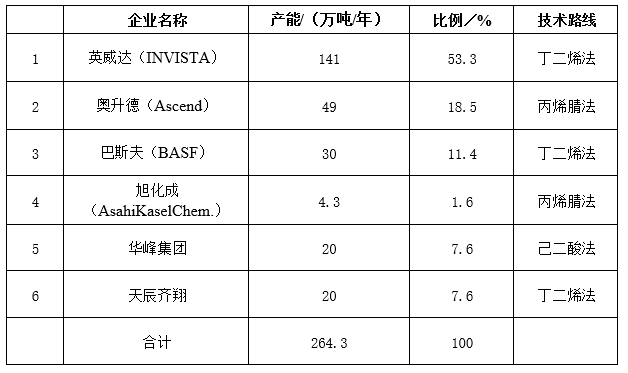 参考资料:国内外己二腈行业现状及竞争力分析,屠庆华,葛凌生