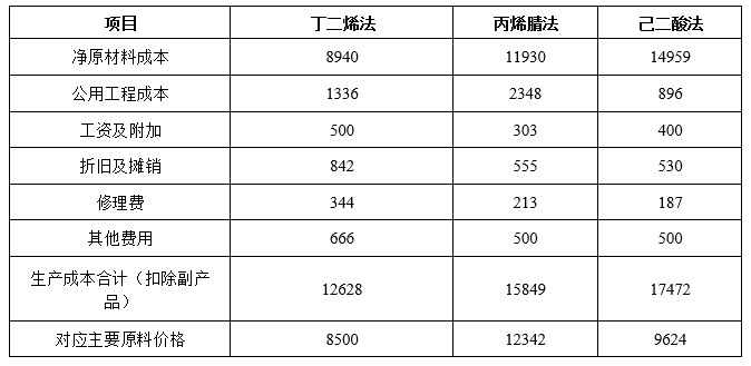 3.丁二烯直接氰化法工艺路线具有显著成本优势