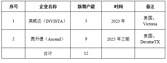 表2国外己二腈拟新增产能情况万t/a