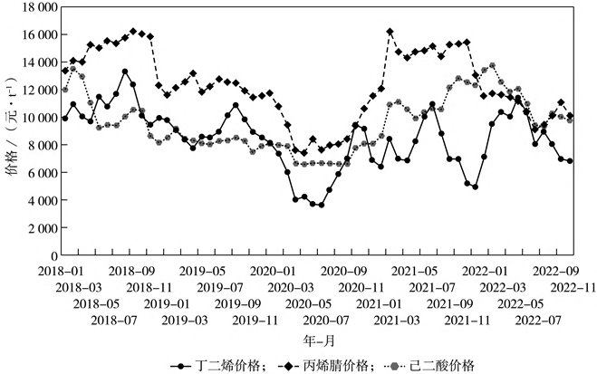 图2 2018-2022年己二腈主要原料价格波动示意