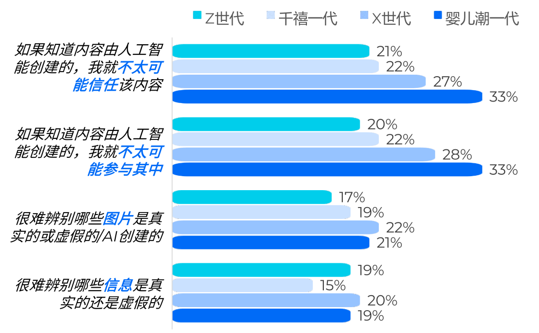 (2)Z世代和千禧一代对AIGC内容信任度更高