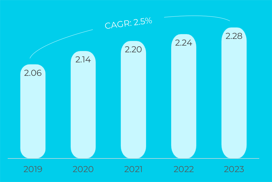 过去五年,全球数字营销市场呈现快速增长态势,且规模增速显著高于整体营销市场。
