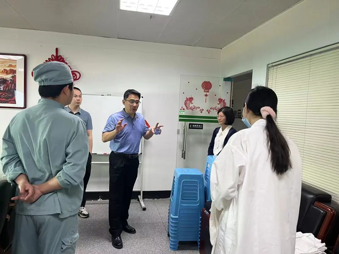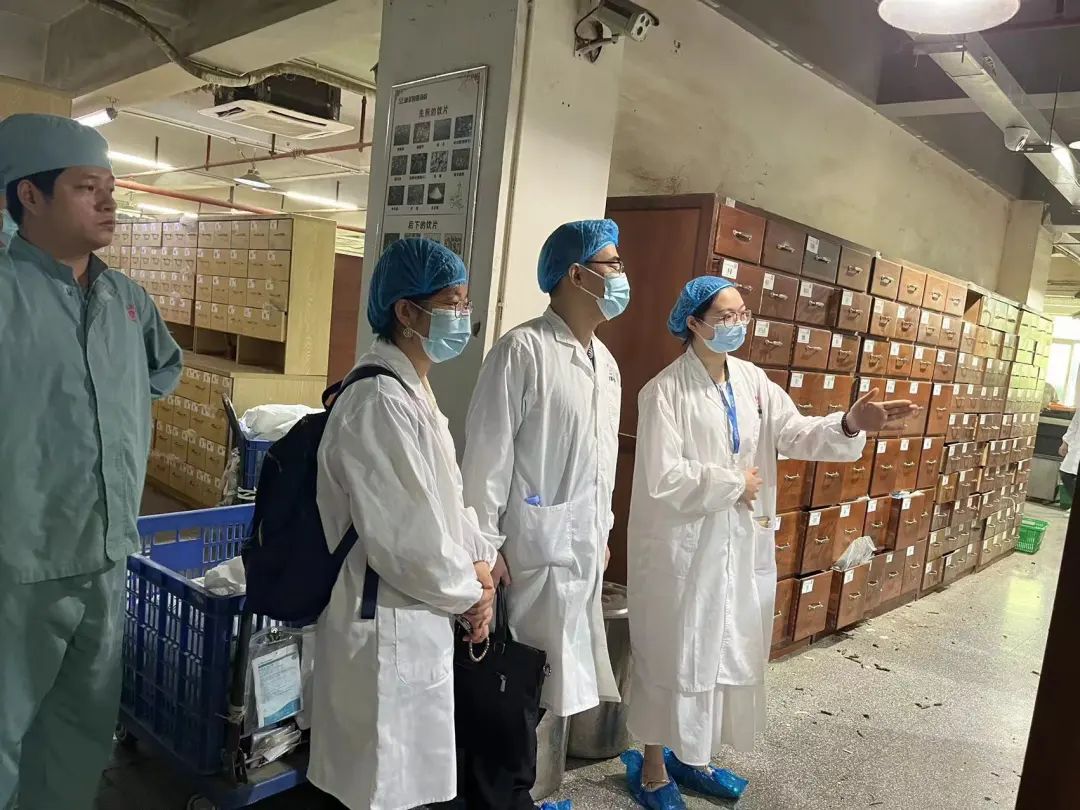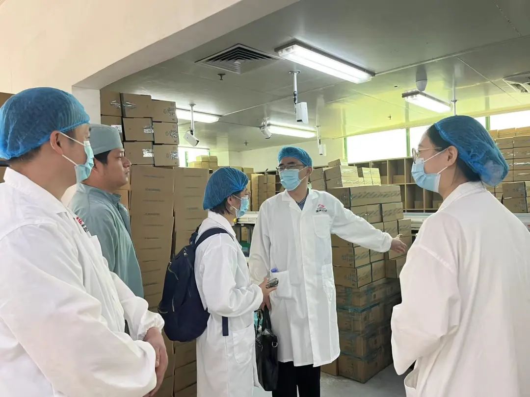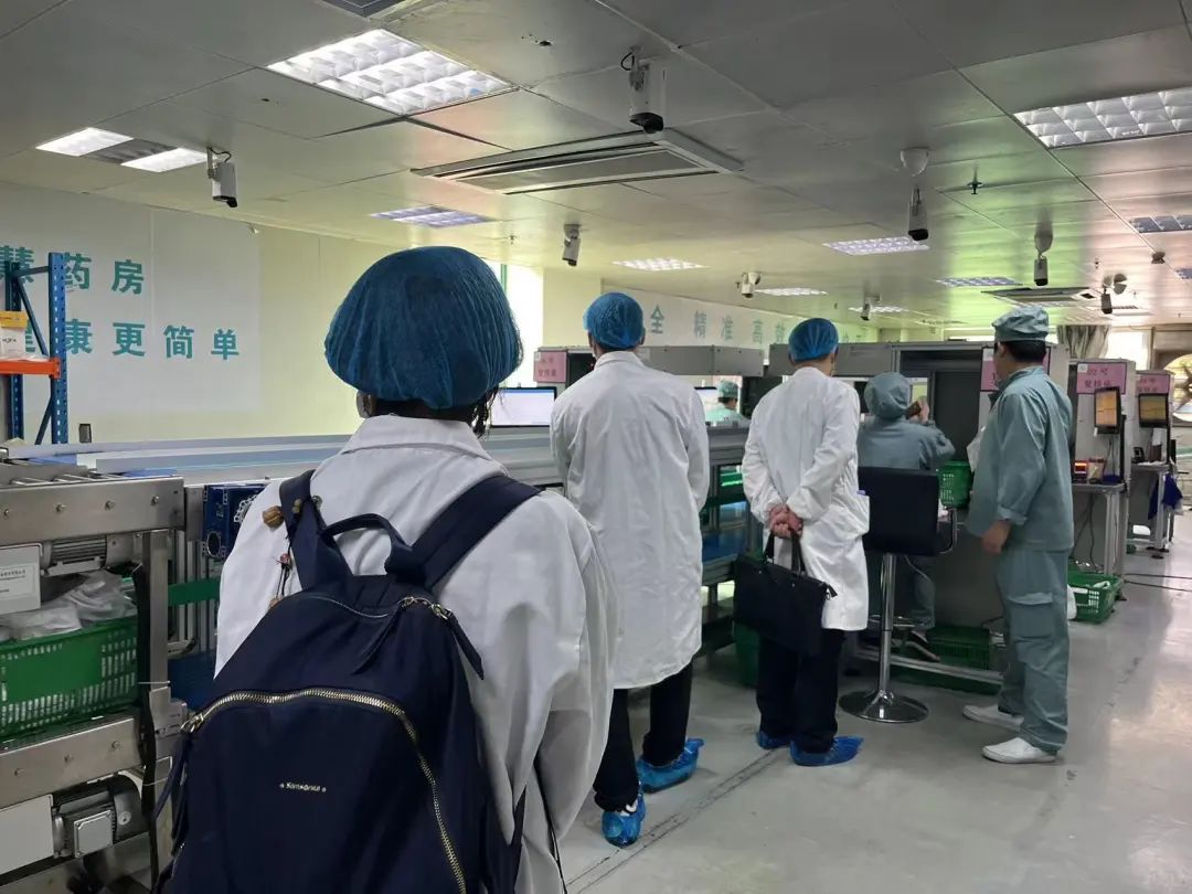 随后,我校一行在企业代表的带领下参观了该公司的药材中转仓库、煎药区、浸泡间、煎药复核区、物流配送等车间。