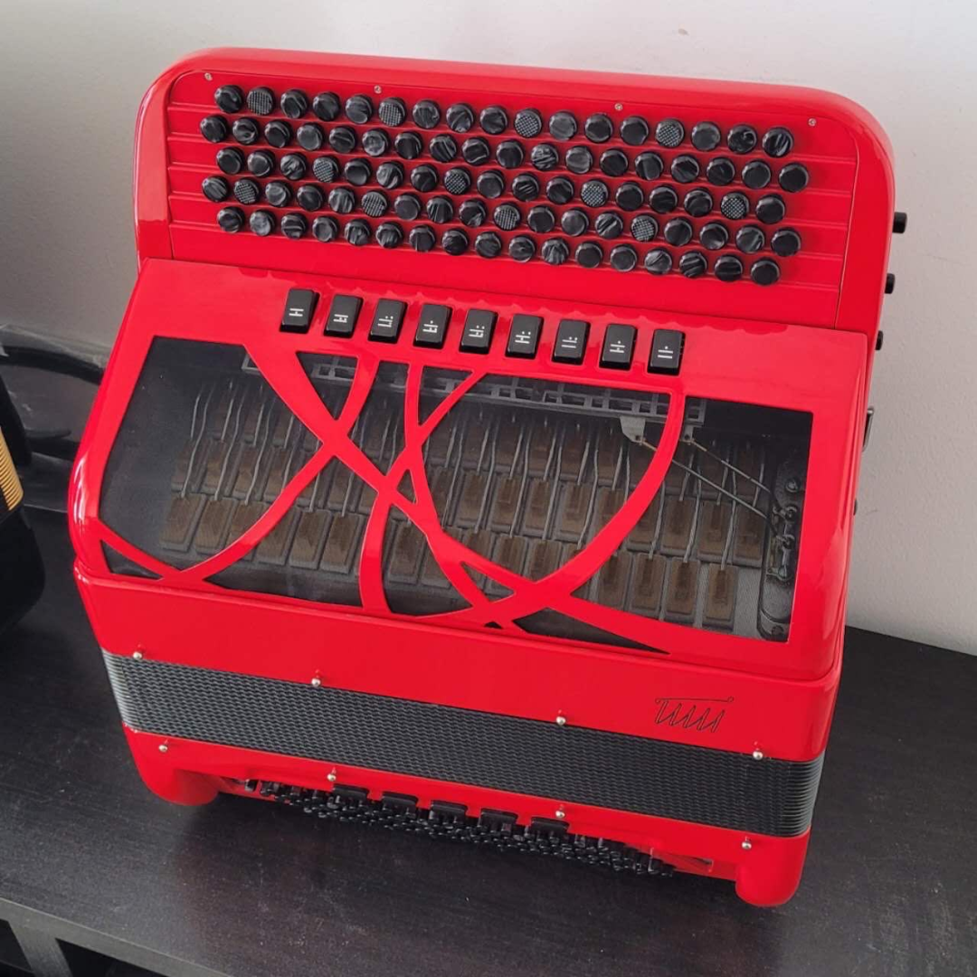 TT手风琴的父辈工作室有着25年的手风琴调音及维修历史,如今,TT手风琴品牌由子辈运作,父母在技术上给予支撑。凭借对手风琴声音的了解,他们对手风琴声音进行了改革,而且还申请了相关专利。来现场的朋友,可不能错过TT手风琴的专属音色。
