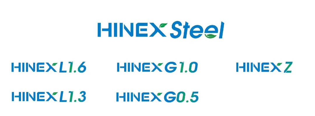 河钢低碳排放产品品牌标识包括一个主标识及五个系列标识。主标识为HINEX Steel,标志河钢(HBIS,H)致力于通过工艺、能源、环境(EAF、Energy、Environment,EX)等多方面的技术创新(Innovation,I)实现碳中和(Neutrality,N)钢铁产品的生产制造。此外,按照L1.6、L1.3、G1.0、G0.5、Z共五个等级分别设定不同低碳排放产品系列标识,包括HINEX L1.6、HINEX L1.3、HINEX G1.0、HINEX G0.5、HINEX Z。