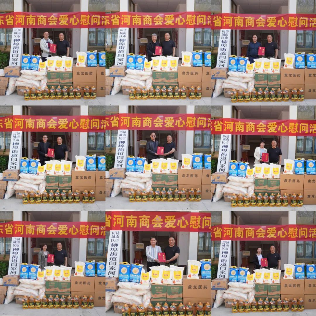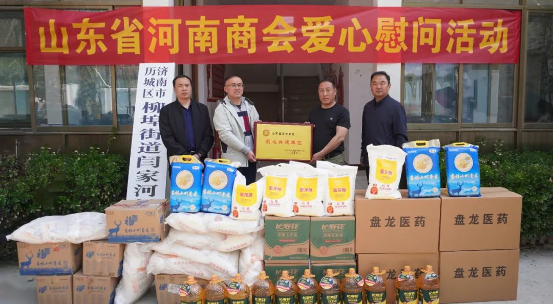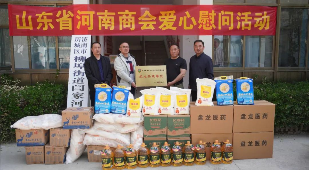 为进一步发挥党建引领作用,履行社会责任,积极为群众办实事,切实展现豫商情怀,传递豫商温暖,4月11日,山东省河南商会在济南市历城区柳埠街道闫家河村开展了爱心慰问活动。当值轮值会长闫新化、轮值执行会长孟少伟,轮值会长王会民、执行会长常相坤、张凤前,常务副会长李娟,副会长周文丽,理事史伟涛、薛雯、祁永斌,柳埠街道闫家管理区书记刘广荣、济南市司法局驻闫家河村第一书记许培于,闫家河村党支部书记兼主任孙秀明等参加了活动。此次活动为闫家河村共捐赠长寿花金胚玉米油32桶、金龙鱼高筋麦芯小麦粉40袋、吉林小町香米32袋、益生菌食品80盒,价值近3万元。