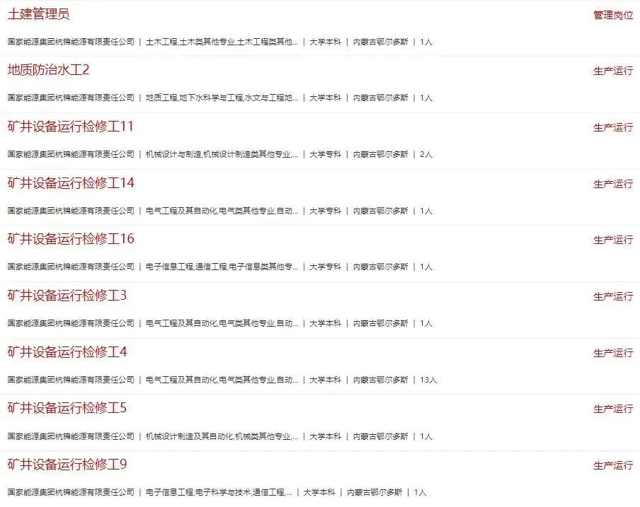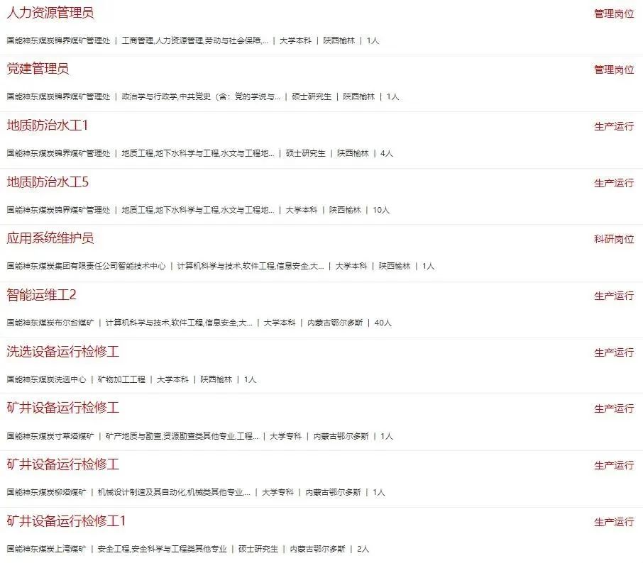 神东煤炭集团所属单位(含杭锦能源)招聘以下岗位,共计339人。