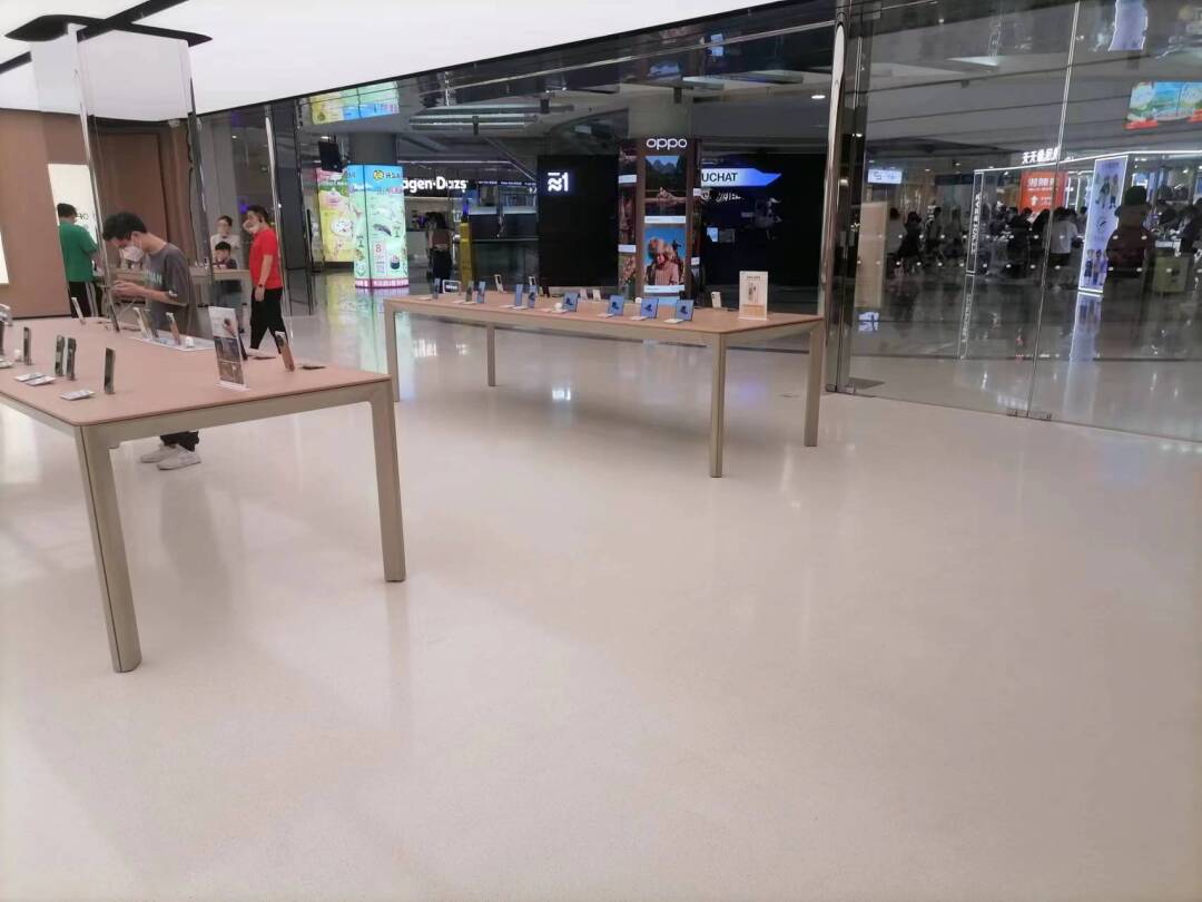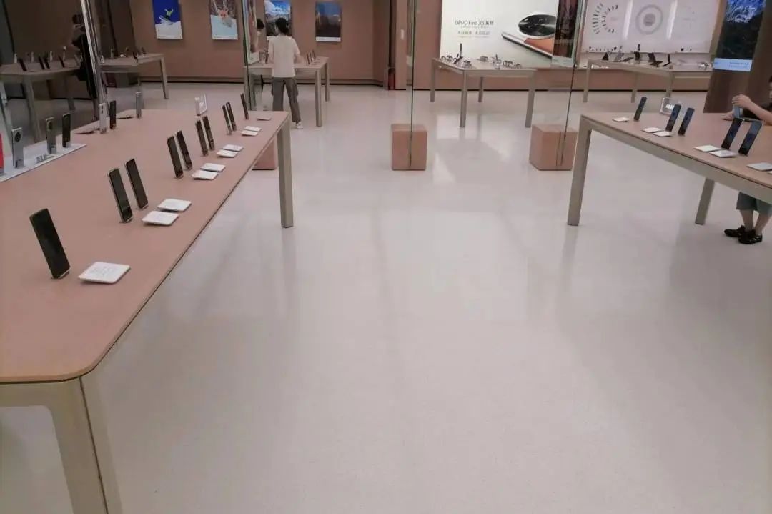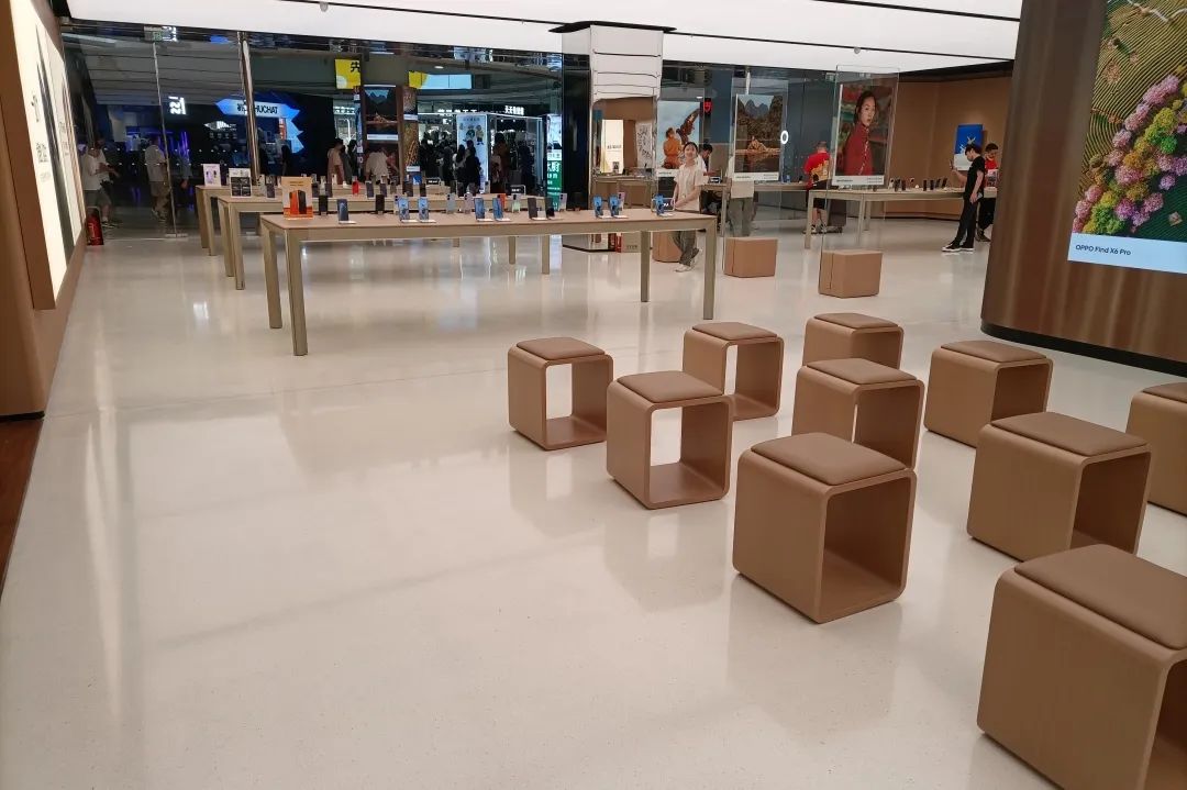 广州OPPO正佳旗舰店是OPPO品牌在全国最大的全新形象旗舰店,总面积超过660平方米。空间整体采用欧尼可定制款白色环氧磨石来装饰地面,为店内地面装饰带来了无限的想象空间,增添了艺术光彩。