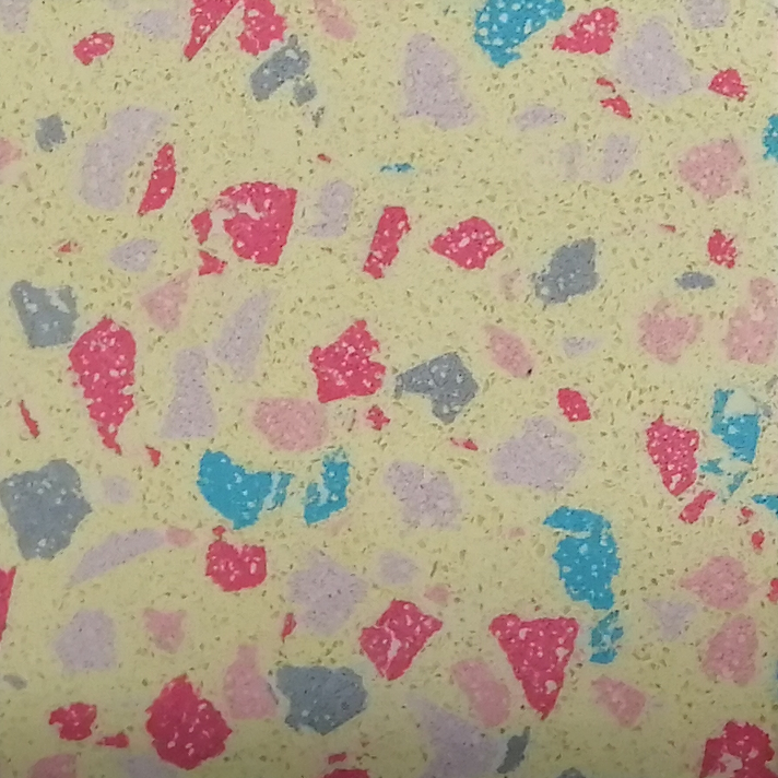 现浇式:由高分子树脂作为粘合剂,混合大理石、贝壳、石英石、再生石材等骨料,进行复杂的工艺打磨抛光后形成的,该地坪是现场摊铺整体无缝、可塑性强、耐用、美观;且颜色、图案随意订制,造型丰富。