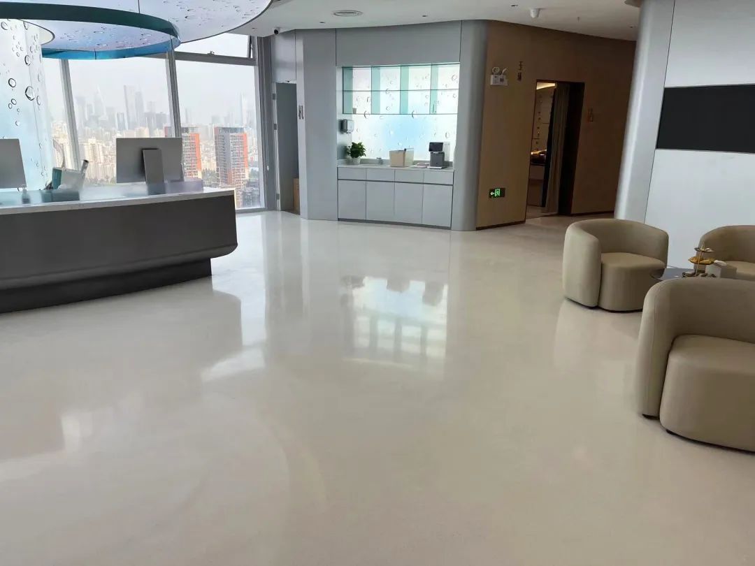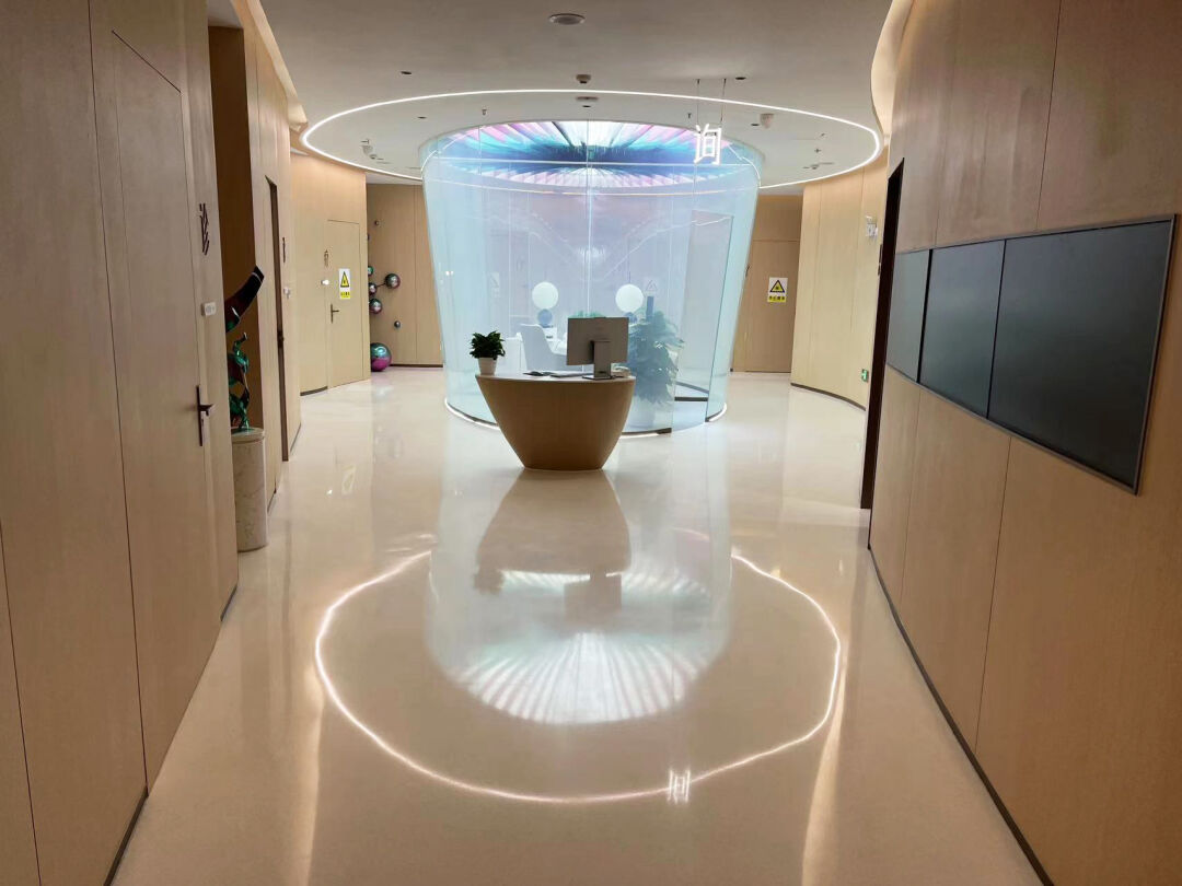 在医院建设中采用水磨石,即满足医院地面防滑耐磨、抗压、环保、美观易清洁的功能性需求的基础上,又满足人们感觉上的需求和环境上的需求,空间以白、灰色调为主,在整体的颜色搭配上,简单、干净,给人十分舒适的氛围感。
