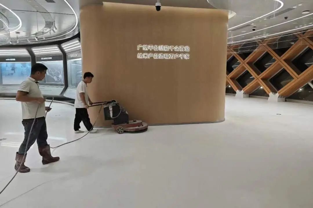 广东粤港澳大湾区国家纳米科技创新研究院,由广东省政府和中科院联合打造的高端项目,定位于国际一流纳米科技成果转移转化基地。地面采用欧尼可白色环氧磨石装饰,赋予了空间一种流畅时尚的美感和天然不加雕饰的自然质感。