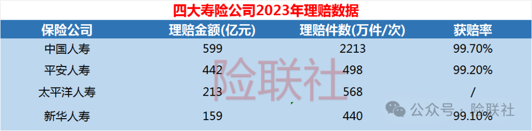 “ 四家寿险公司的赔付金额和件数相较于2022年均有所提升,而且,在赔付率上,消费者获赔率整体在99%以上。”