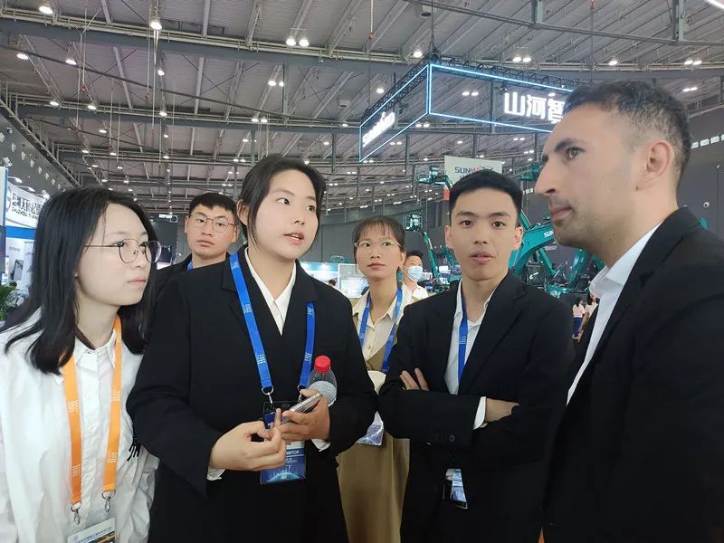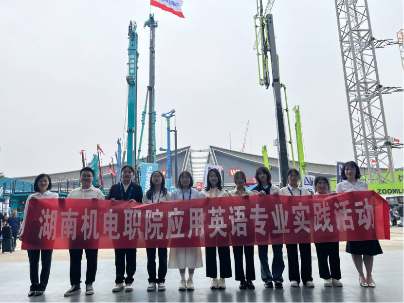为对接企业用人需求,提高培养学生质量,加快学科专业高质量建设。5月14日,由经济贸易学院副院长张亮领队,组织教师代表及应用英语专业2021级、2022级部分学生代表参加第三届长沙国际工程机械展览会,在长沙国际会展中心开展了为期一天的专业实践及访企拓岗活动。