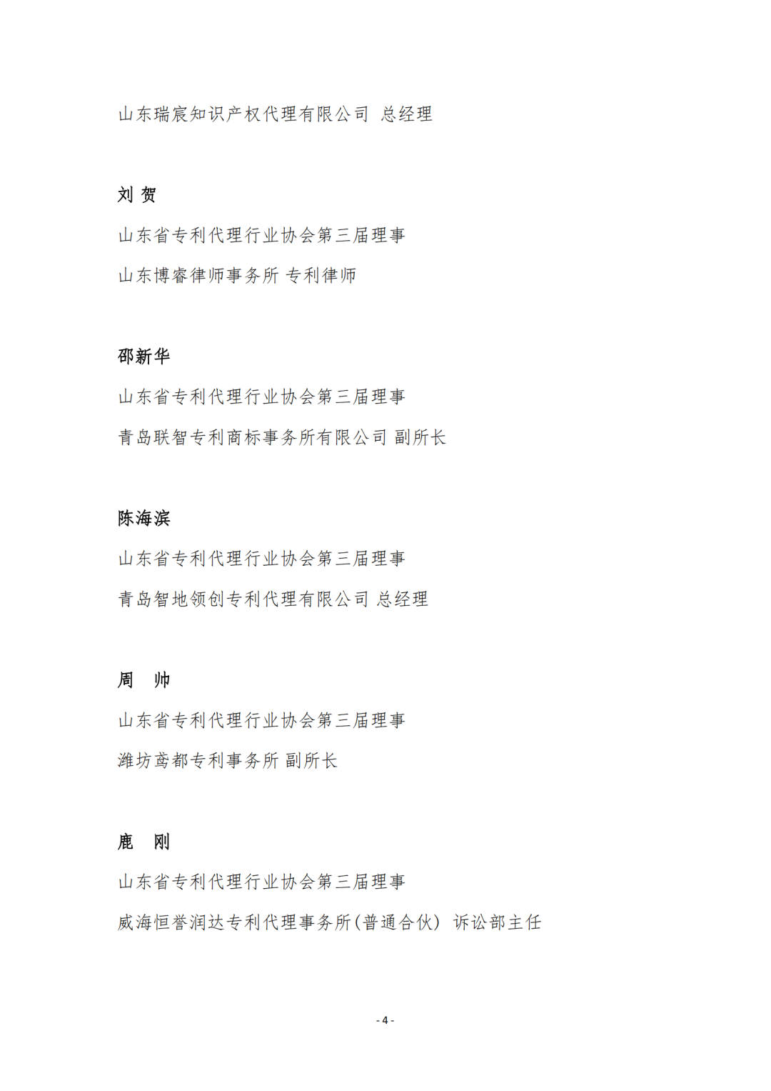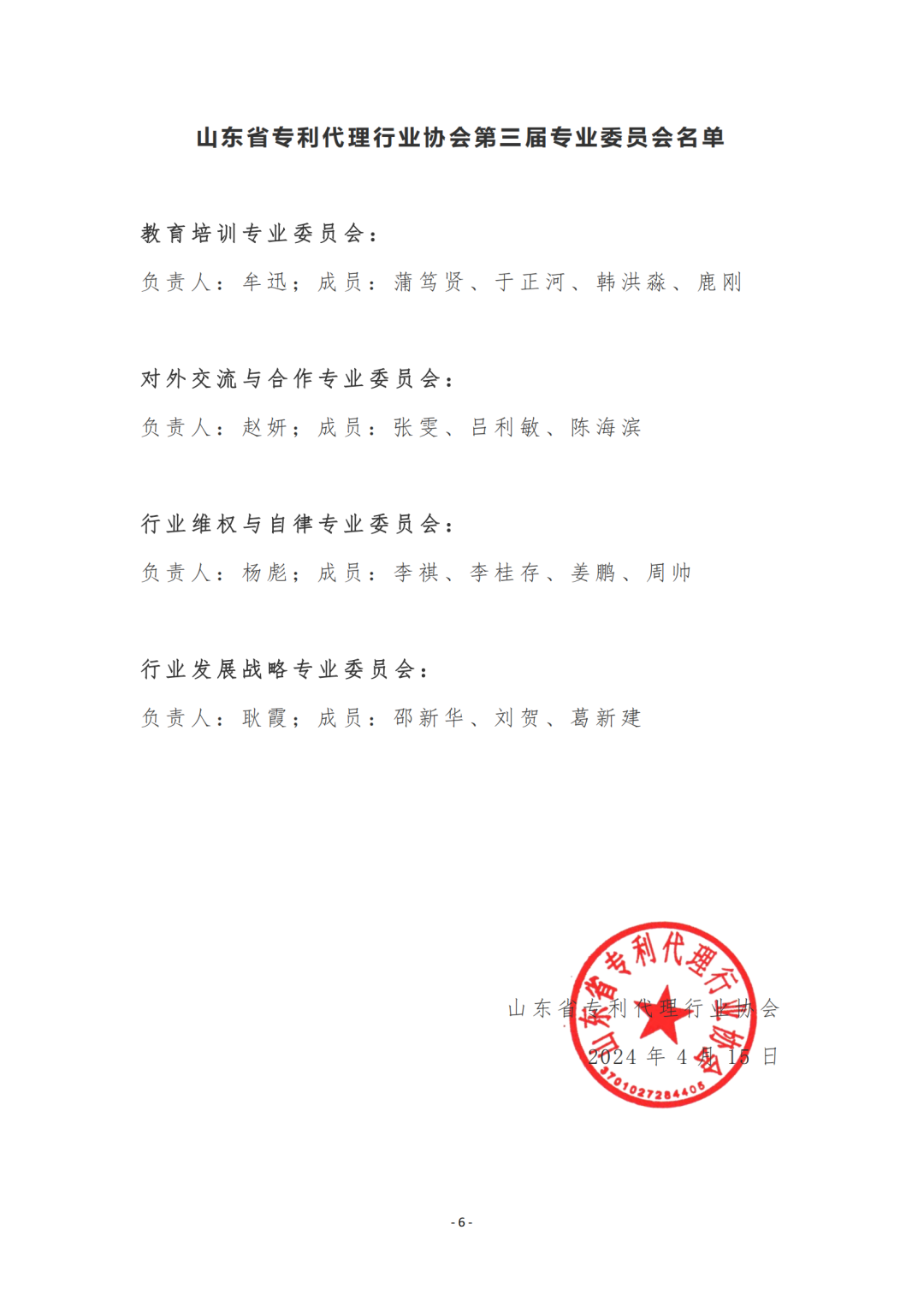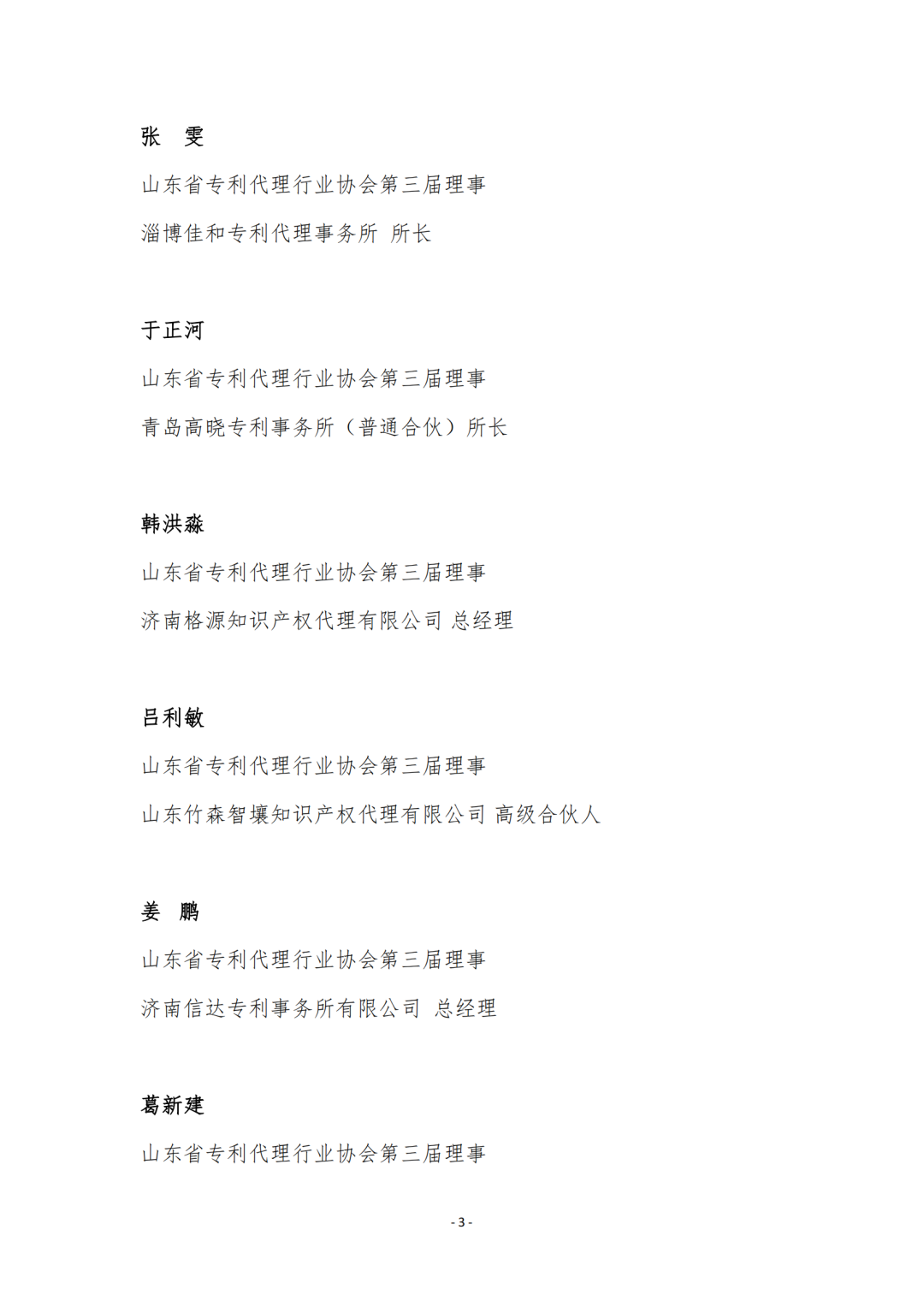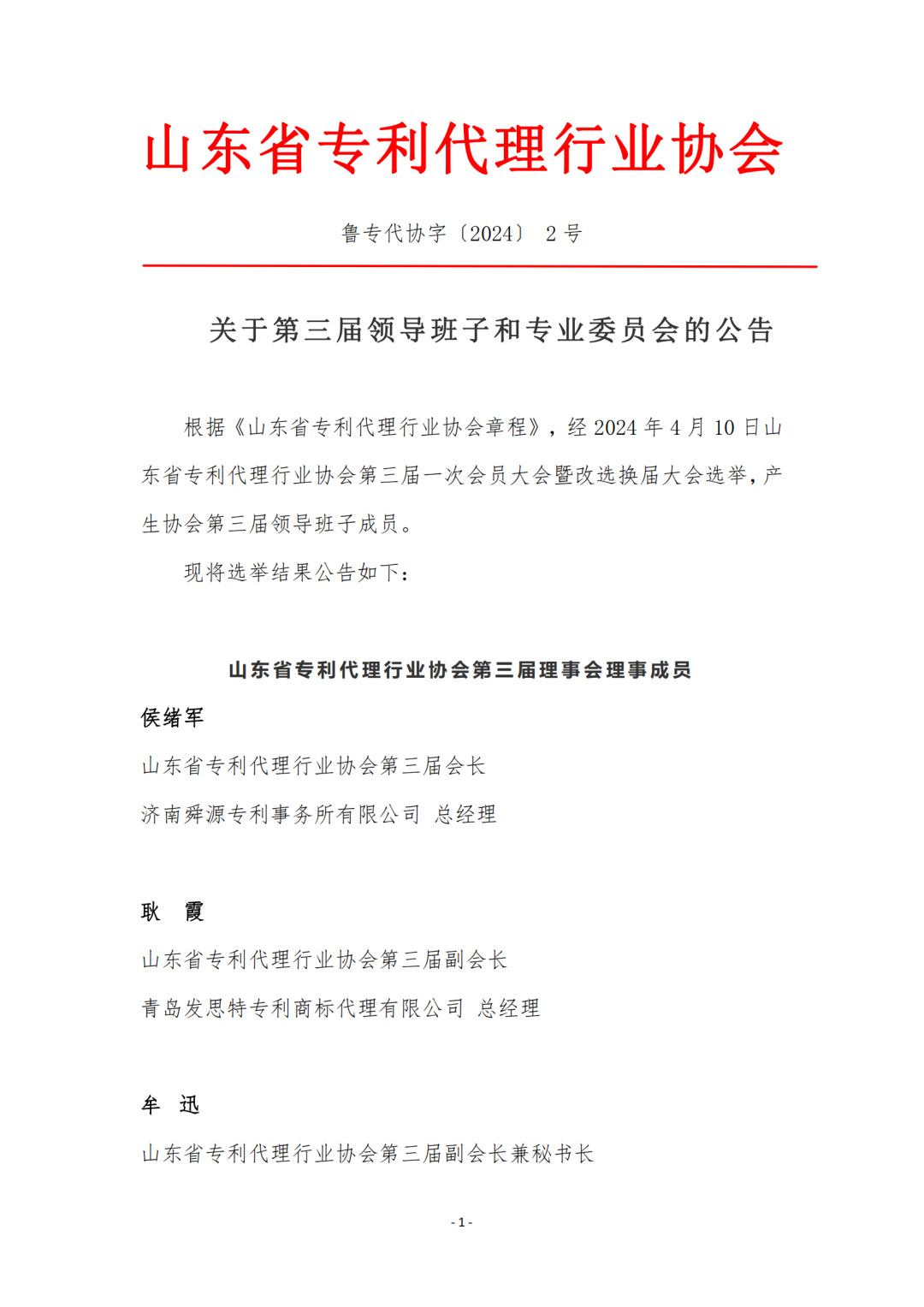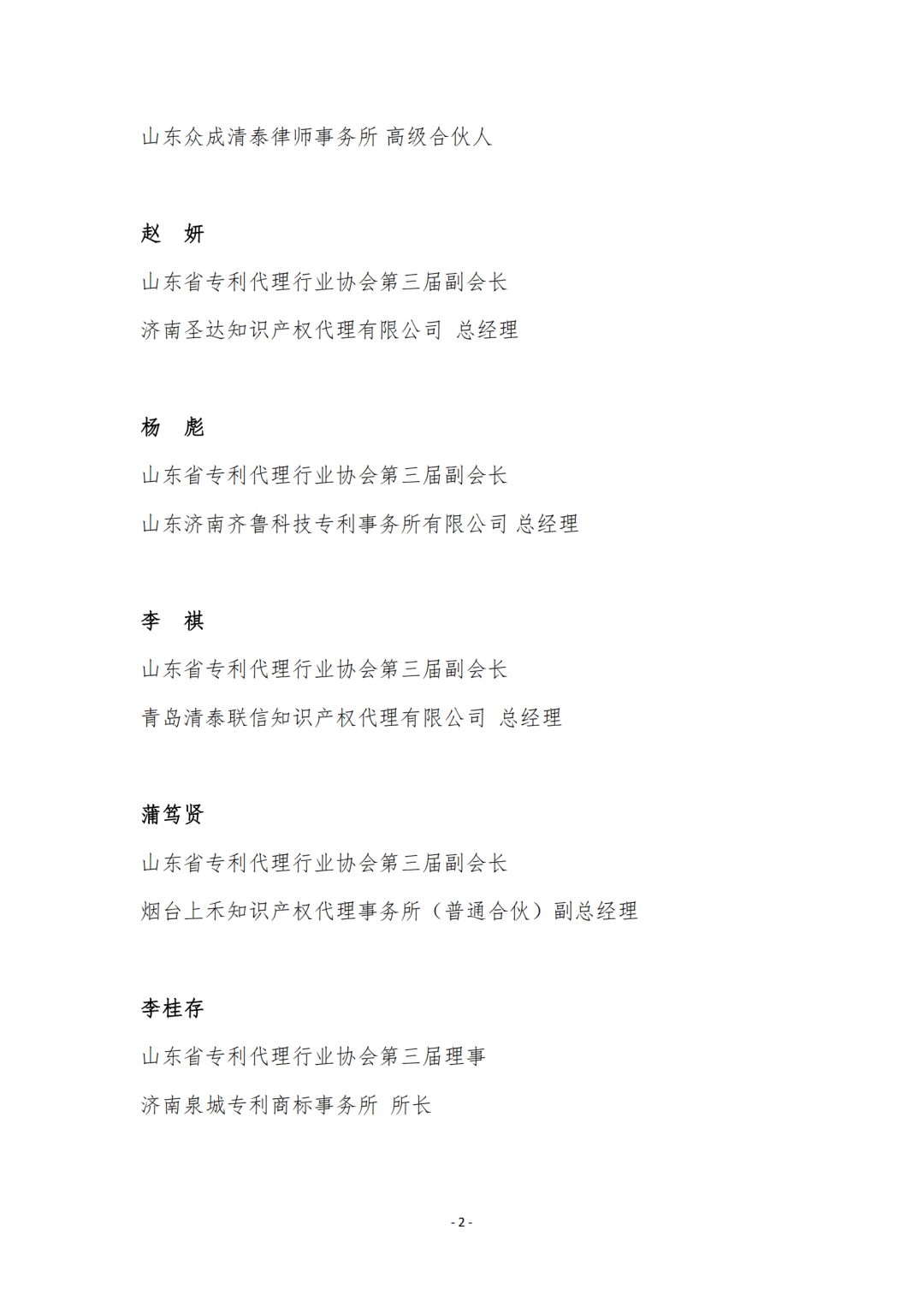 公告 | 关于山东省专利代理行业协会第三届领导班子和专业委员会的公告