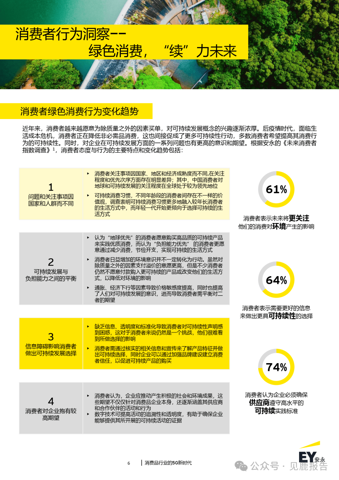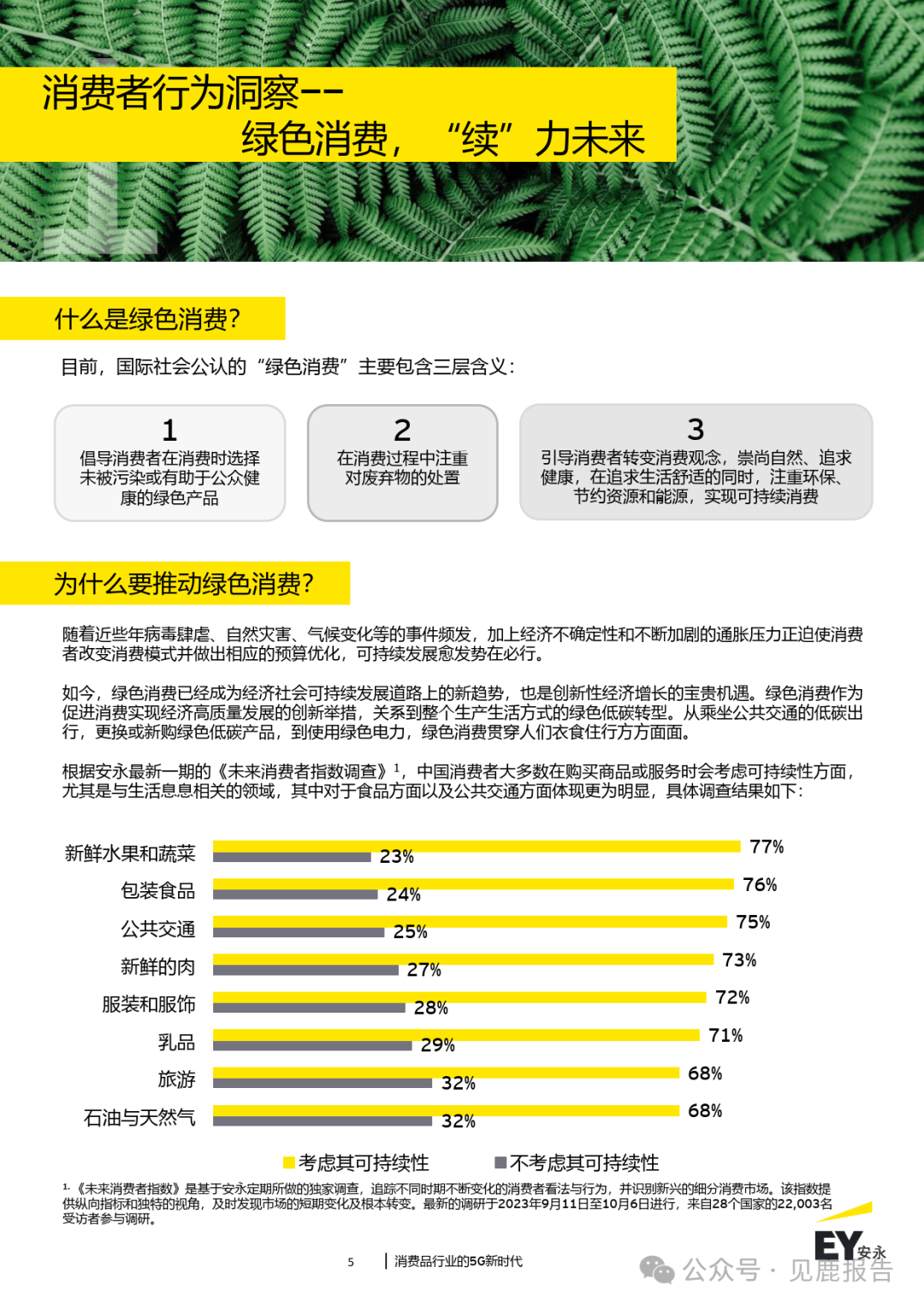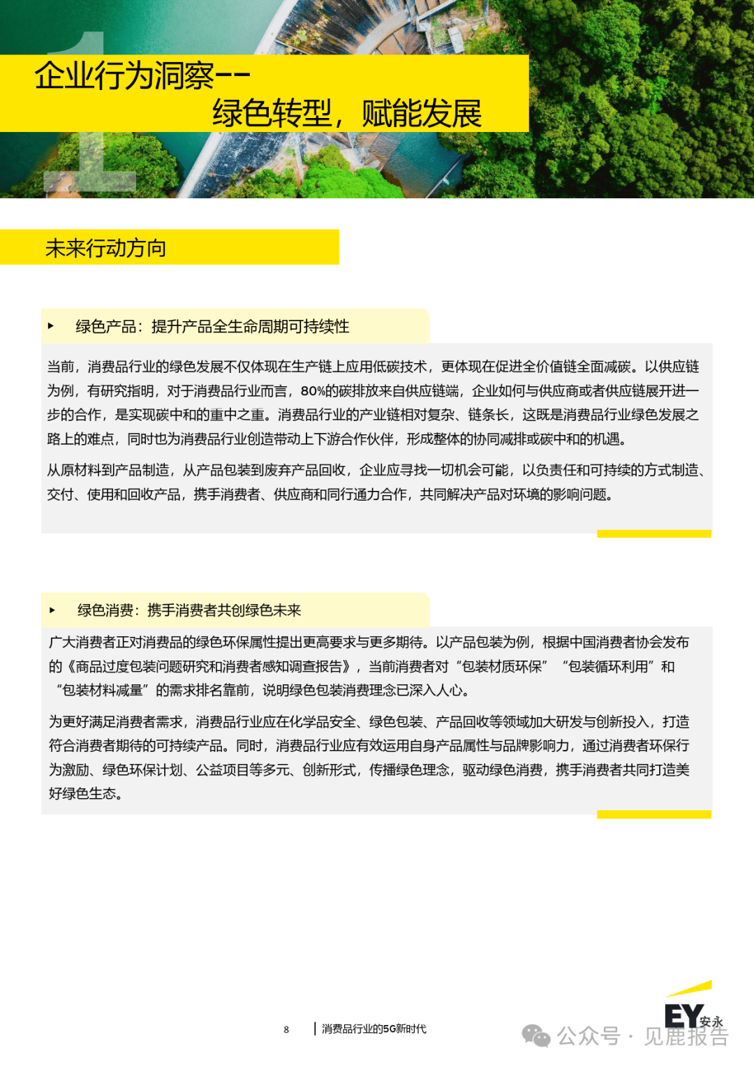 “Go Green-践行绿色”:消费品行业绿色转型趋势愈发明显,消费者以及消费品企 业共同推进了绿色消费的发展;