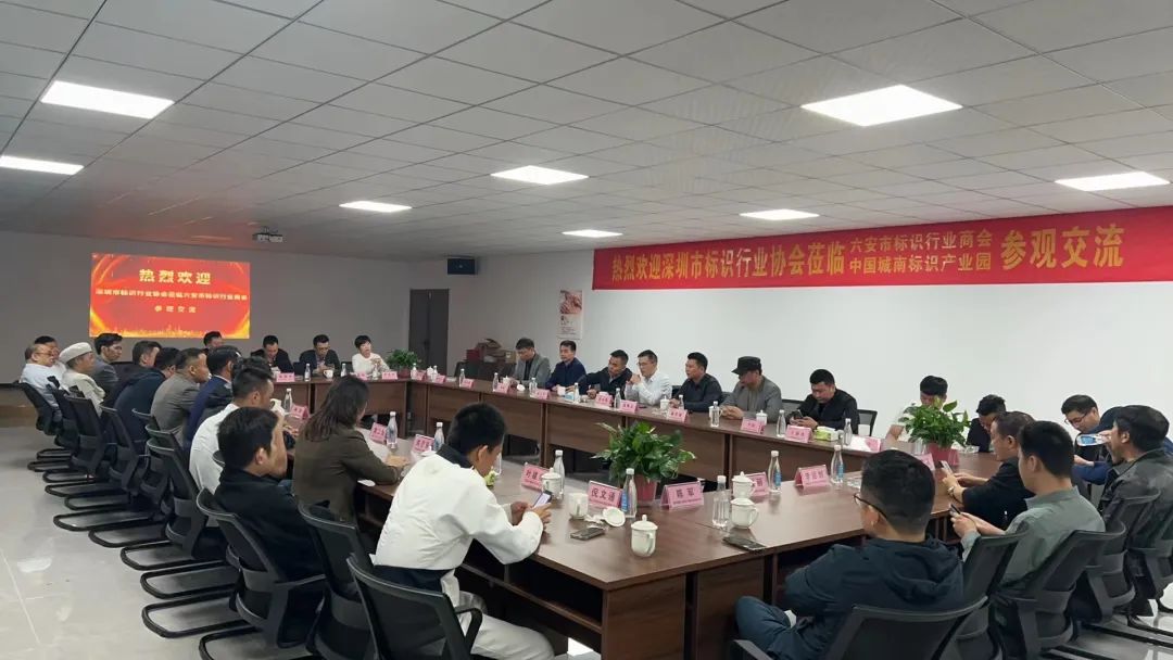 4月13日,交流团来到六安市标识行业商会,展开座谈交流。会议伊始,六安市标识行业商会会长湛永俊对深标协一行表示热烈欢迎,随后介绍了六安市标识行业商会整体布局以及组织架构,分享了主要工作成果和发展方向。在相互介绍了协会及商会的基本情况后,双方参会人员积极发言,友好交流,围绕如何建立互动交流常态化机制、会员服务、资源整合等方面进行了深入的交流与探讨,建立深厚友谊。