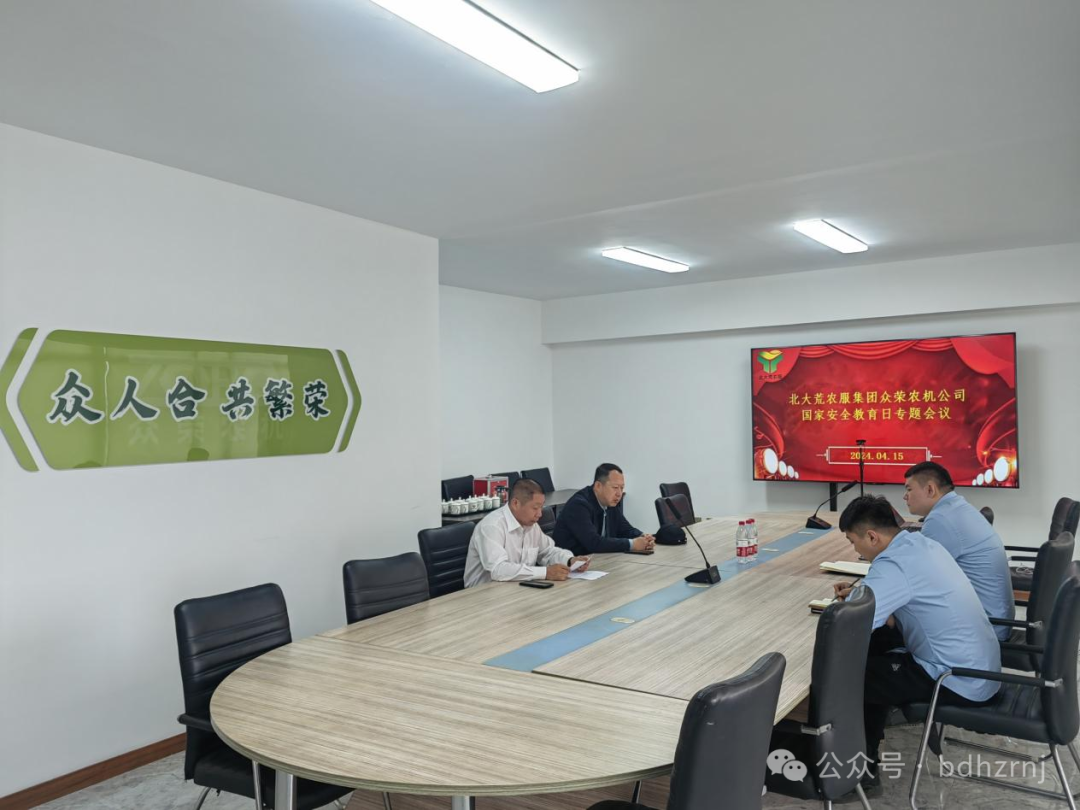 4月15日,为推动国家安全教育工作广泛深入普及,提升公司干部职工国家安全意识和素养,按照集团党委部署,农服集团众荣农机公司召开了国家安全教育日专题会议,农服集团众荣农机全体在哈班子成员参会。