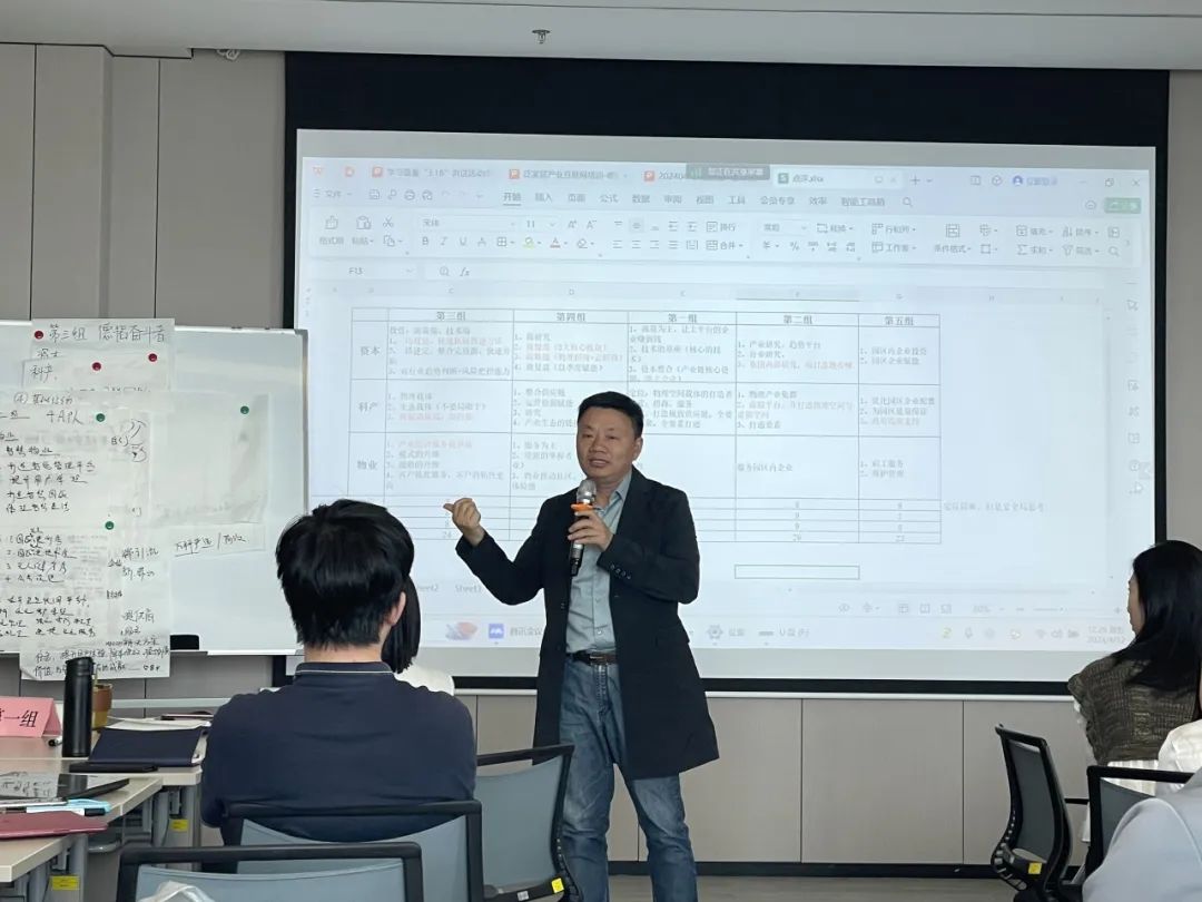 全体参训学员分五组就产业互联网和产业综合体建设展开讨论,对德韬控股各板块在泛家居产业互联网平台中的角色、定位、职责、任务与价值展开讨论,各组选派3名代表登台分享讨论成果,红安团队线上分享讨论所得,主讲人进行分析评讲。