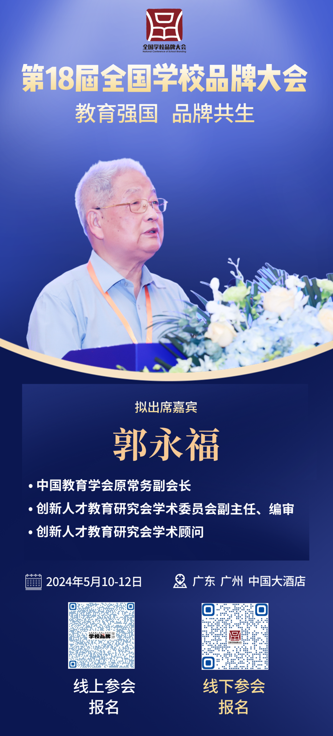 本届大会上,郭老将致开幕辞,一起期待5月10日-12日举办的第18届全国学校品牌大会吧!