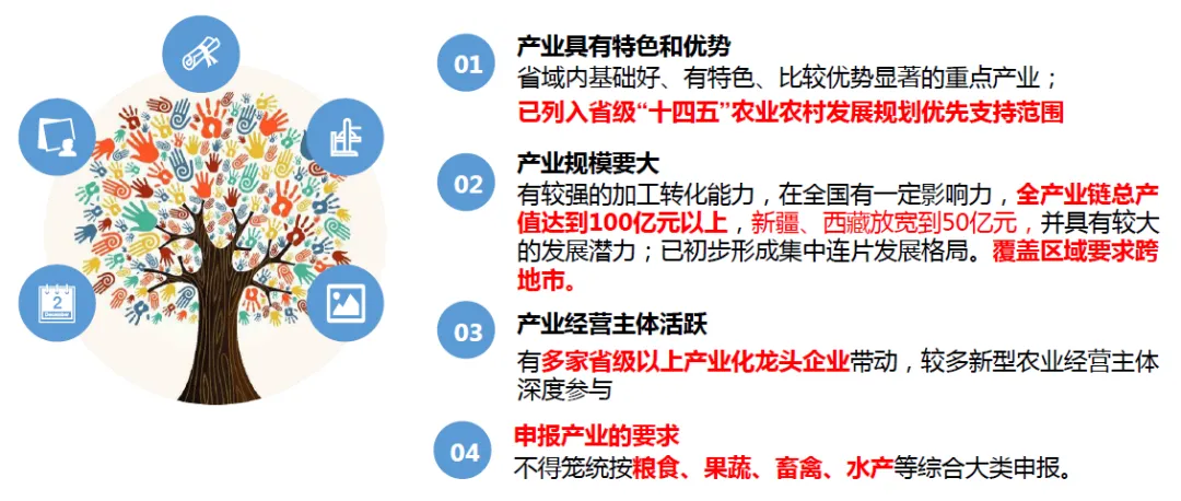 (6)所选产业需具体到品种,不得申报粮食、果蔬、畜禽、水产等综合性产业。