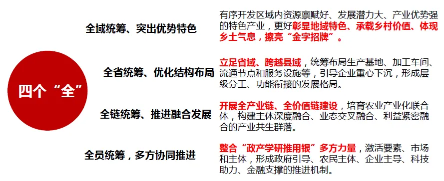 以习近平新时代中国特色社会主义思想为指导,牢固树立新发展理念,落实高质量发展要求,围绕乡村振兴战略部署,坚持市场主导、政府扶持的原则,按照全产业链开发、全价值链提升的思路,选准优势特色主导产业,集中资金资源,着力解决好产业发展中的瓶颈制约和关键环节,打造一批结构合理、链条完整的优势特色产业集群,为全面建成小康社会和乡村全面振兴提供有力支撑。
