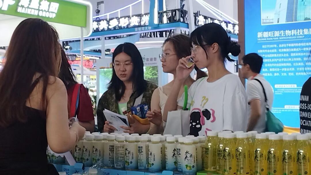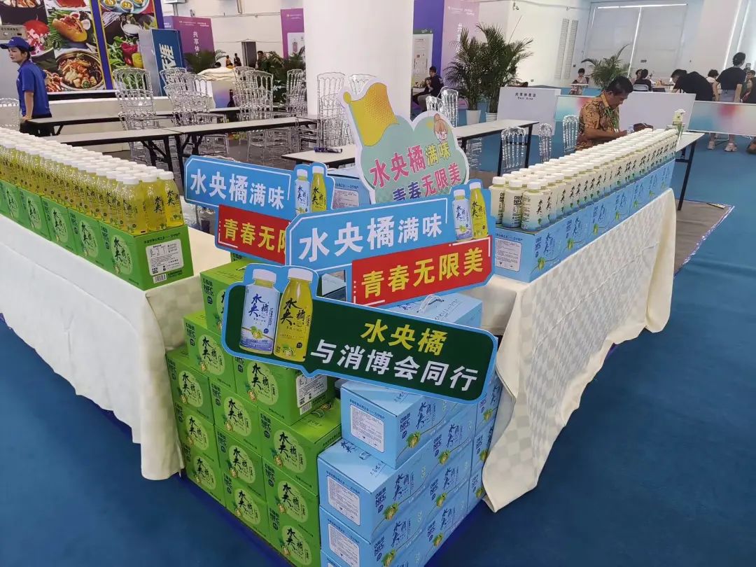 主打“0脂肪”“NFC非浓缩还原”“鲜果摘取,原汁原味”等果汁加工特色“水央橘”品牌,在近日举办的第四届中国国际消费品博览会亮相海南国际会展中心。
