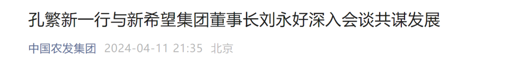 刘永好指出,中国农发集团作为综合性农业央企,在农业领域具有深厚的实力和丰富的经验,与新希望集团在业务上具有高度的互补性,双方是最佳的合作伙伴。他对此前中新食品项目推进过程中国农发集团项目管理团队表现出的高效、务实、规范的工作风格表示赞扬和感谢。他表示,新希望集团将全力支持中国农发集团的发展,愿共同探索通过混合所有制的新路径,推动解决农牧业领域“卡脖子”技术问题,为推进农业农村现代化和乡村振兴作出更大的贡献。期待在与中国农发集团深入战略合作中,共同开创中国农业新格局。