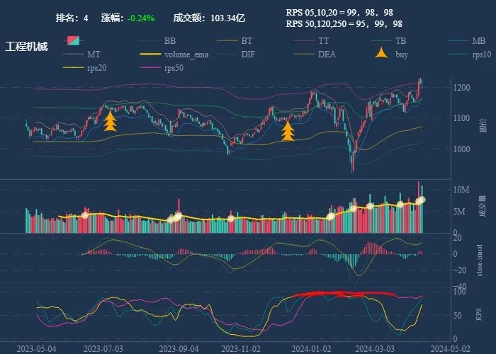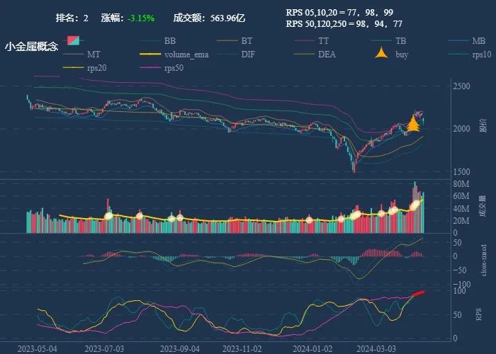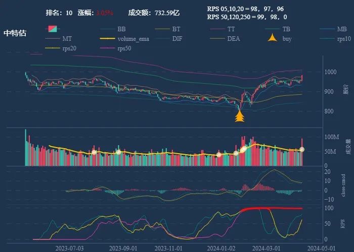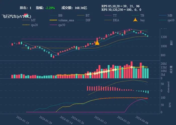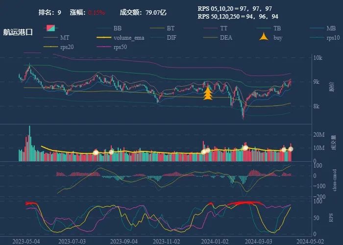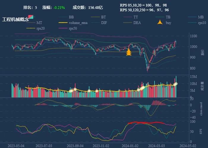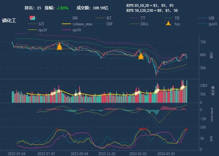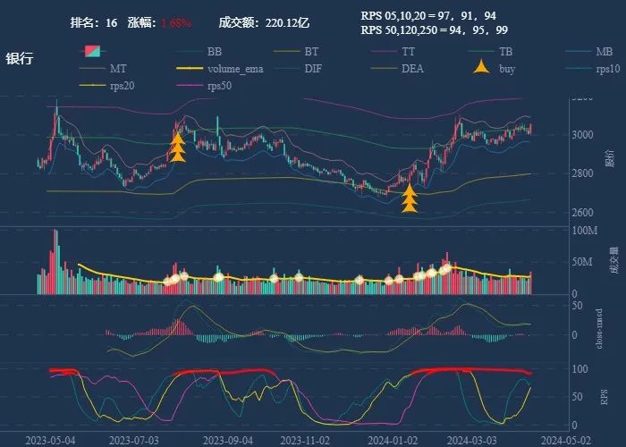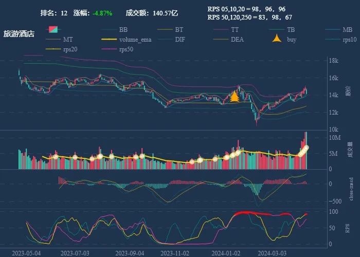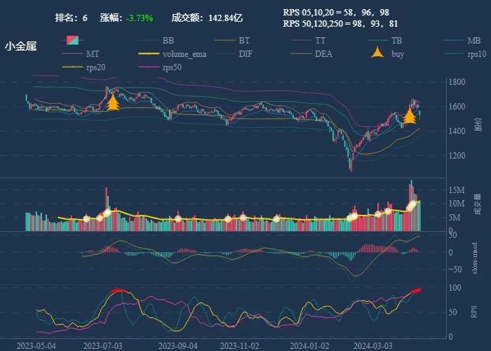 成交额超过 100 亿 排名靠前,macd柱由绿转红 成交量要大于均线 有必要给每个行业加一个上级的归类,这样更能体现主流方向 rps 有时候比较滞后,但不少是欲杨先抑, 应该持续跟踪,等 macd 反转时参与 一线红:第一次买点出现后往往是顶峰,等回调,macd 反转,rps50 还一直红,第二次买点重现 行业趋势依旧在,做最强个股,别恐高。 第一波行情 rps20 + 10日均线,第二波行情 rps50 + macd反转。