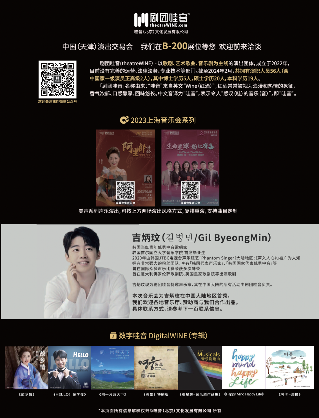 【主要演出】「音乐剧GALA音乐会·全国巡演」「韩国低男中音歌唱家-吉炳玟 中国首秀音乐会」「……其他美声、艺术歌曲音乐会」