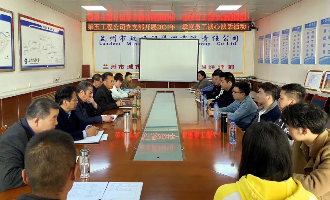 4月12日,第五工程公司党支部开展青年员工谈心谈话活动,党支部书记、经理拓伟民主持会议并讲话,公司管理人员及近20名青年员工代表参加。