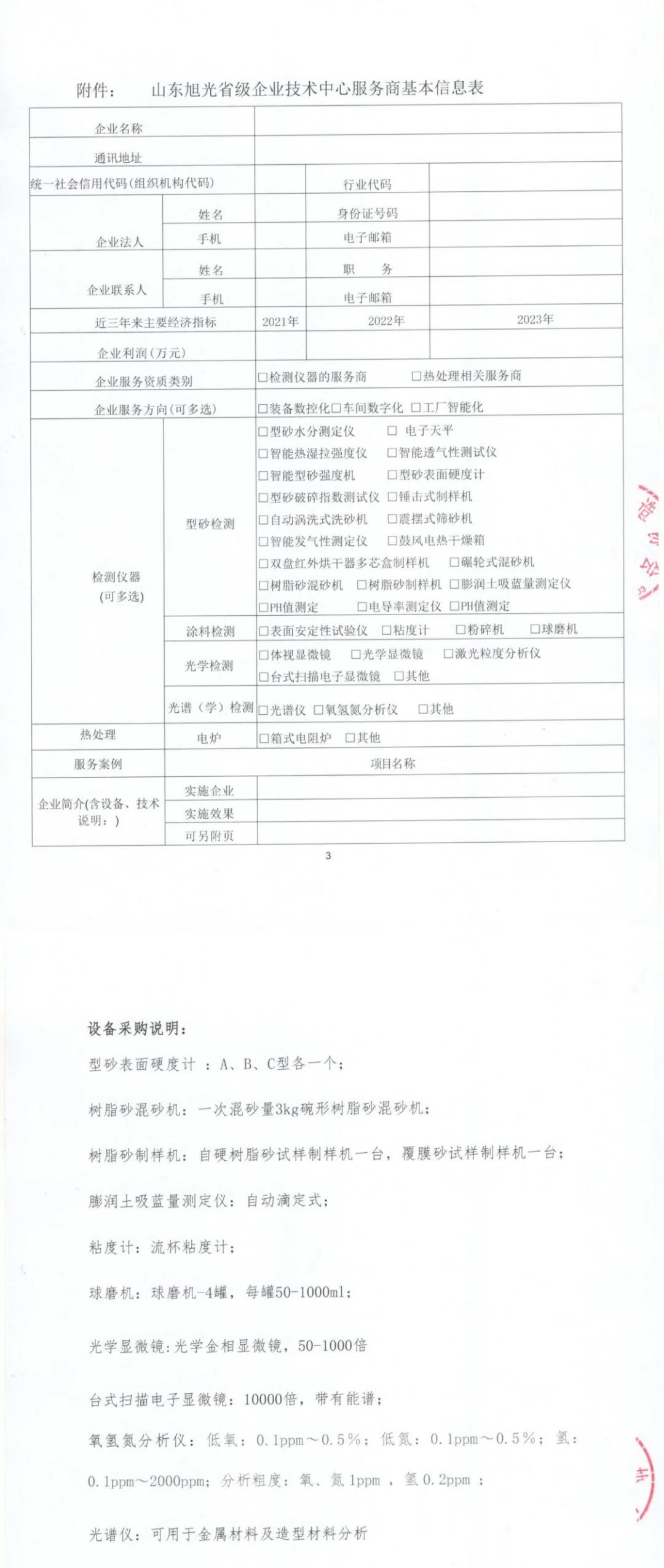 附件:《山东旭光省级企业技术中心服务商基本信息表》