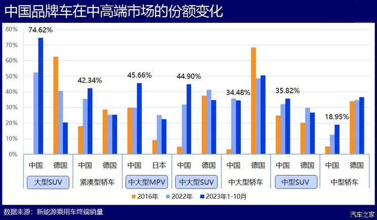 中国品牌车在中高端市场的份额变化