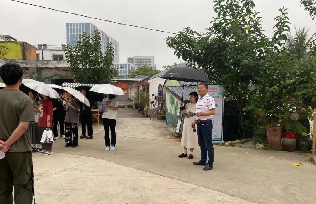 调研活动中,师生深入品牌设计领域实践,通过参观乡村、拜访名家、交流讨论、实地考察等方式,探索品牌设计的精髓和创新之处。先是参观了整座村子的主要建筑与景观,通过创始人的介绍,深入了解了海南“898”艺术村的文化建设内涵。随即师生又拜访了名师名家,听取他们的艺术设计理念和实践经验,在设计师座谈环节,由资深设计师和品牌顾问与学生就当代国内外品牌设计发展趋势、创意表达进行了交流和探讨。他们的分享不仅拓展了学生视野,还激发了我们对品牌设计的热情和创新意识。