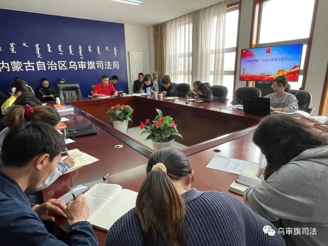 为贯彻落实好鄂尔多斯市司法行政系统律师、公证行业整顿工作精神,组织开展好乌审旗律师教育整顿工作,进一步加强律师、公证员职业道德的建设、提高律师、公证员整体素质、强化自律意识。根据市司法局下发的《鄂尔多斯市司法行政系统律师行业教育整顿实施方案》。乌审旗司法局组织律师事务所全体律师和公证处全体工作人员于3月30日召开律师、公证行业警示教育大会。